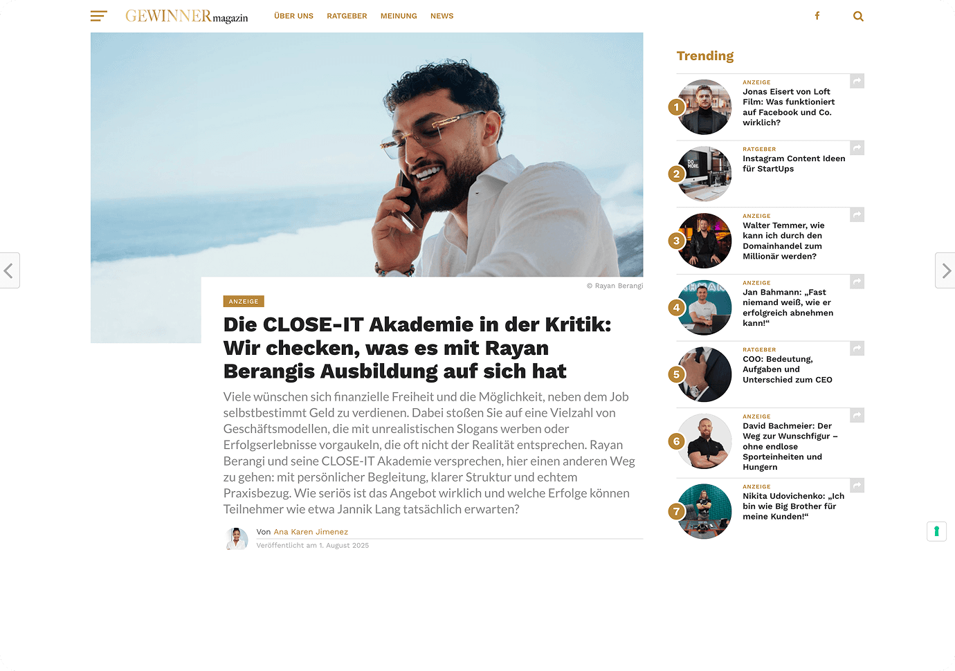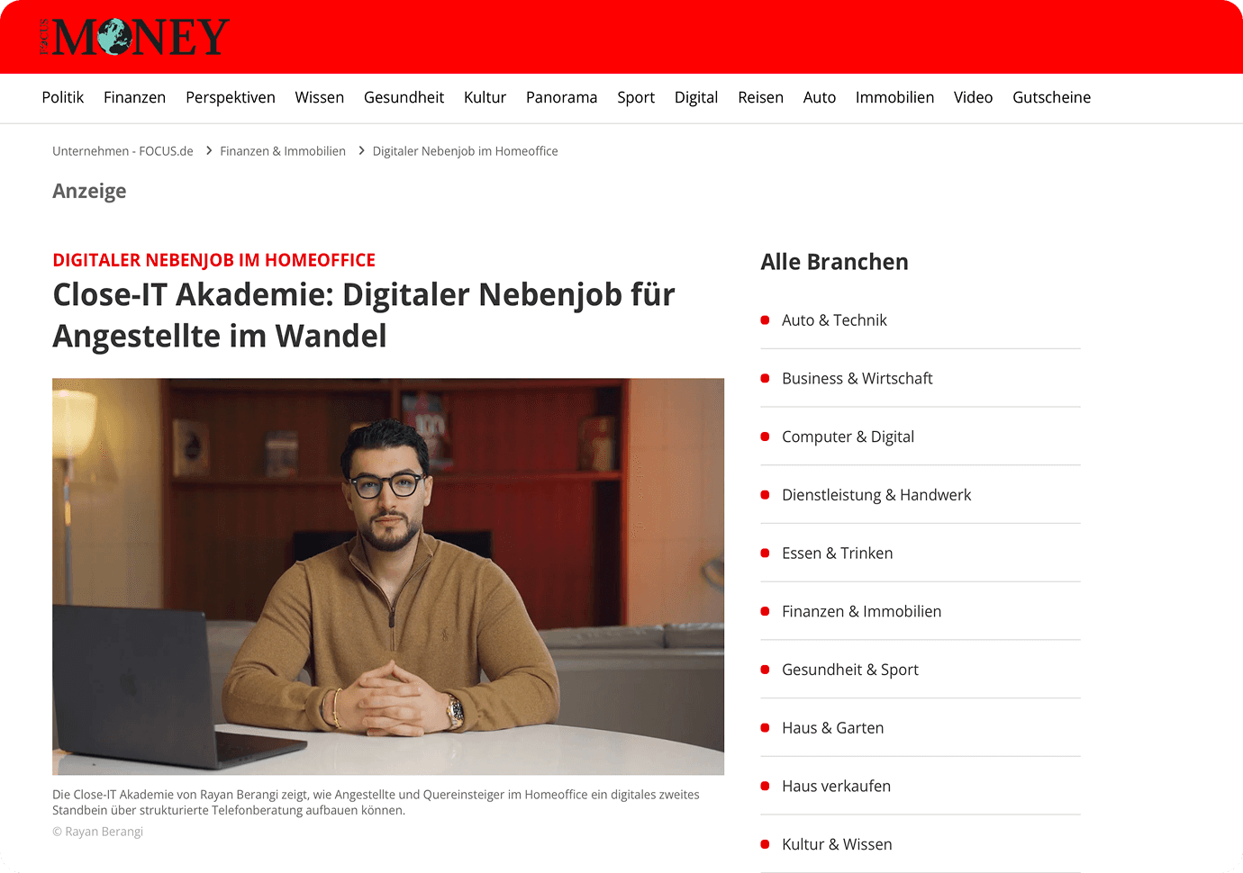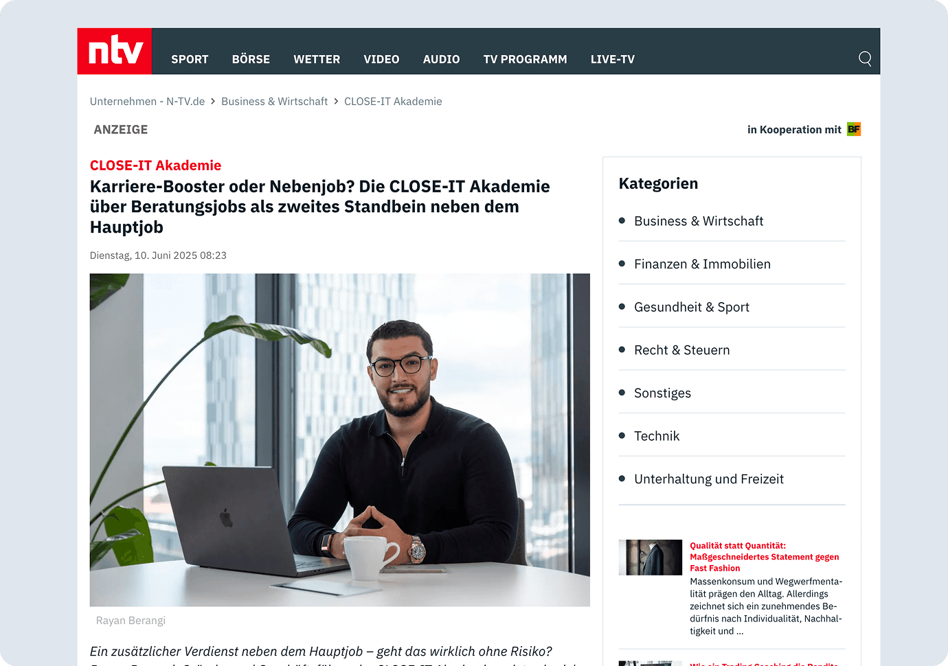 Erfahre mehr über die Close-IT Akademie und Rayan Berangi in renommierten Wirtschaftspublikationen.